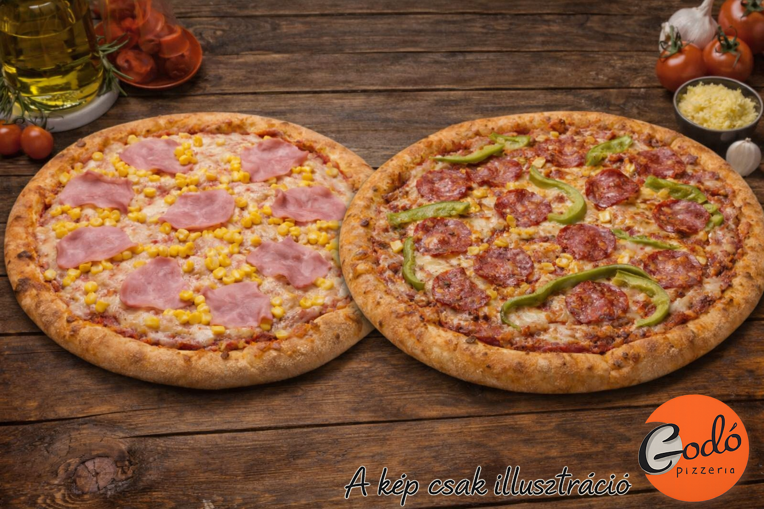 2 db 30 cm-es 6 feltétes pizza