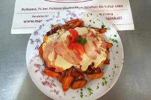 (rántott szelet, gombamártás, füstölt sajttal kemencében besütve, kérjük válasszon hozzá köretet!)