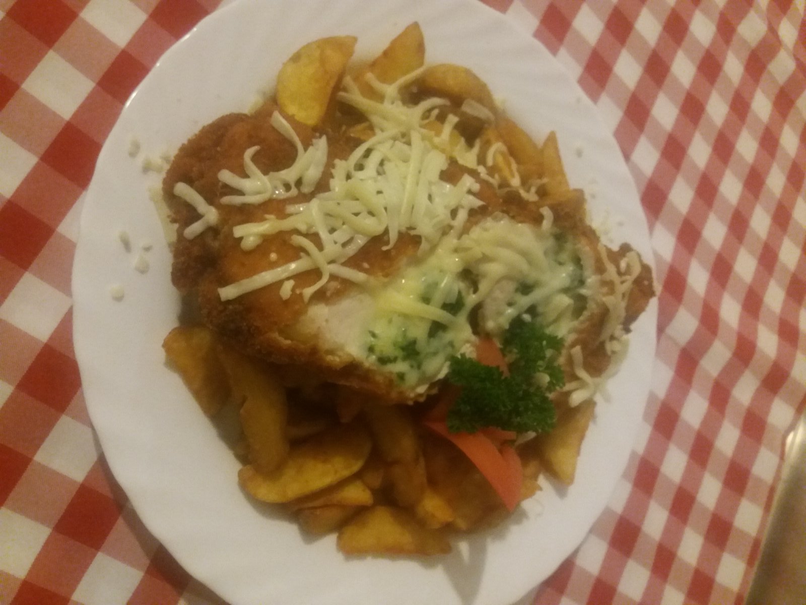 Sajttal,spenóttal töltött csirkemell,sajtos bundában