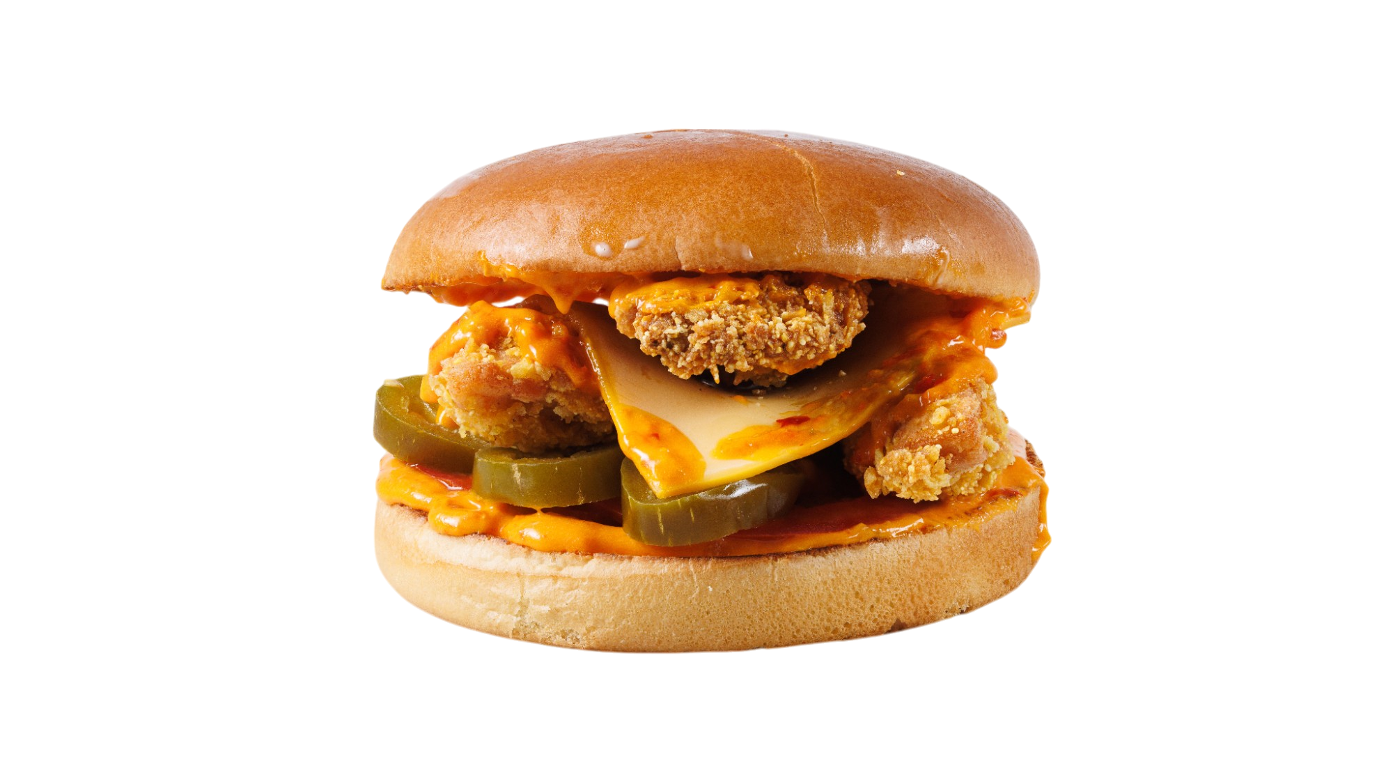 (Super Crispy csirkemell ( 2db ), szezámos buci, chilis cheddar cheese szósz, paradicsom, csipős jalapeno)