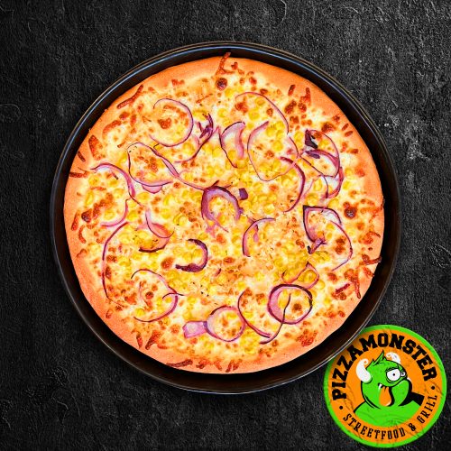 (sajtkrémes alap, csirkemell, trappista, kukorica, lila hagyma)