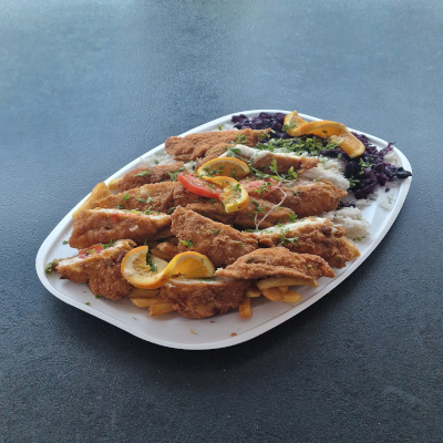 (feta sajttal, paradicsommal töltött csirkemell rántva, dupla sajttal töltött csirkemell rántva, brokkolival, sajttal töltött csirkemell rántva, vegyes köret)