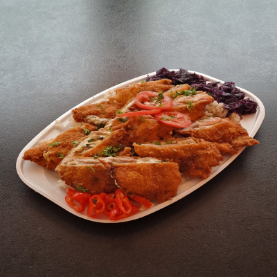 (sült baconnal, sonkával, szalonnával töltött sertésborda rántva, pirított gombával, sajttal töltött sertésborda rántva, juhtúrós töltelékkel töltött sertésborda rántva, rizi-bizi)