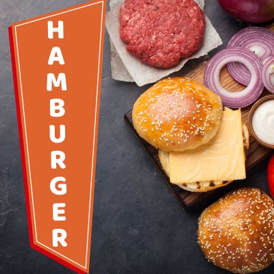 (20 dkg kézműves marhahúspogácsa, pirított hagyma, jégsaláta, uborka, káposzta, lilahagyma, ketchup, mustár, házi készítésű hamburger szósz)